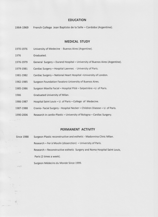 His solid background in general surgery, thoracic, cardiac and reconstructive surgery has characterized his career which he began straight after graduating at just 22, winning a place at the illustrious Hospital of Buenos Aires. There he participated in general surgery and went on to reconstructive surgery specifically treating burns and severe malformations in children from villages in Patagonia.